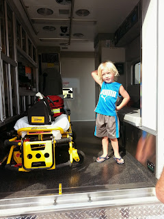 Cason absolutely LOVES police cars, fire trucks, airplanes, helicopters... you name it. Anything that resembles a vehicle, moves, or is loud is a favorite. They started a new thing at the airport this year called Wings and Wheels to raise money for a local air museum. We went with my mom in September and it was so fun to see Cason get excited about all of his favorite things being in one place. He was able to sit in the cockpit of an old fighter jet, spin the wheel of a vintage fire truck, and even tour an ambulance. Needless to say he was in heaven. Kevin was just content to sit in the stroller and watch the excitement going on around him. The day we went was the day he turned 9 months old. It is crazy that he is growing up so fast! It was a really fun day and I hope to go again next year.